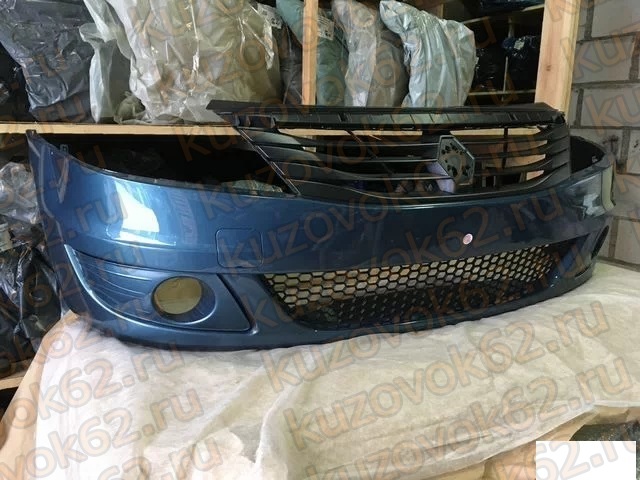 АНАЛОГ/ТОЛЬЯТТИ Бампер передний Renault Logan Ф2 (2010-2014) в цвет (RNF Bleu Mineral Синий) Литой с решёт.